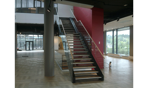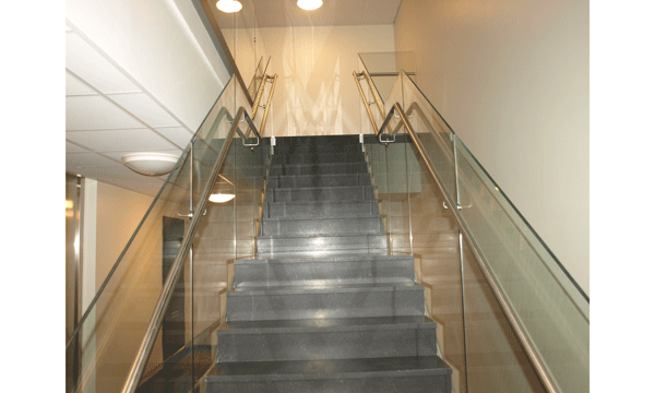 Pääkonttorin porras, tolpaton lasikaide