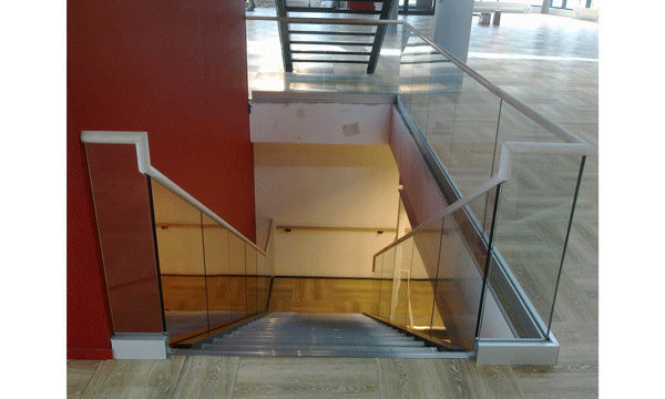 Kauppakeskusporras, tolpaton lasikaide